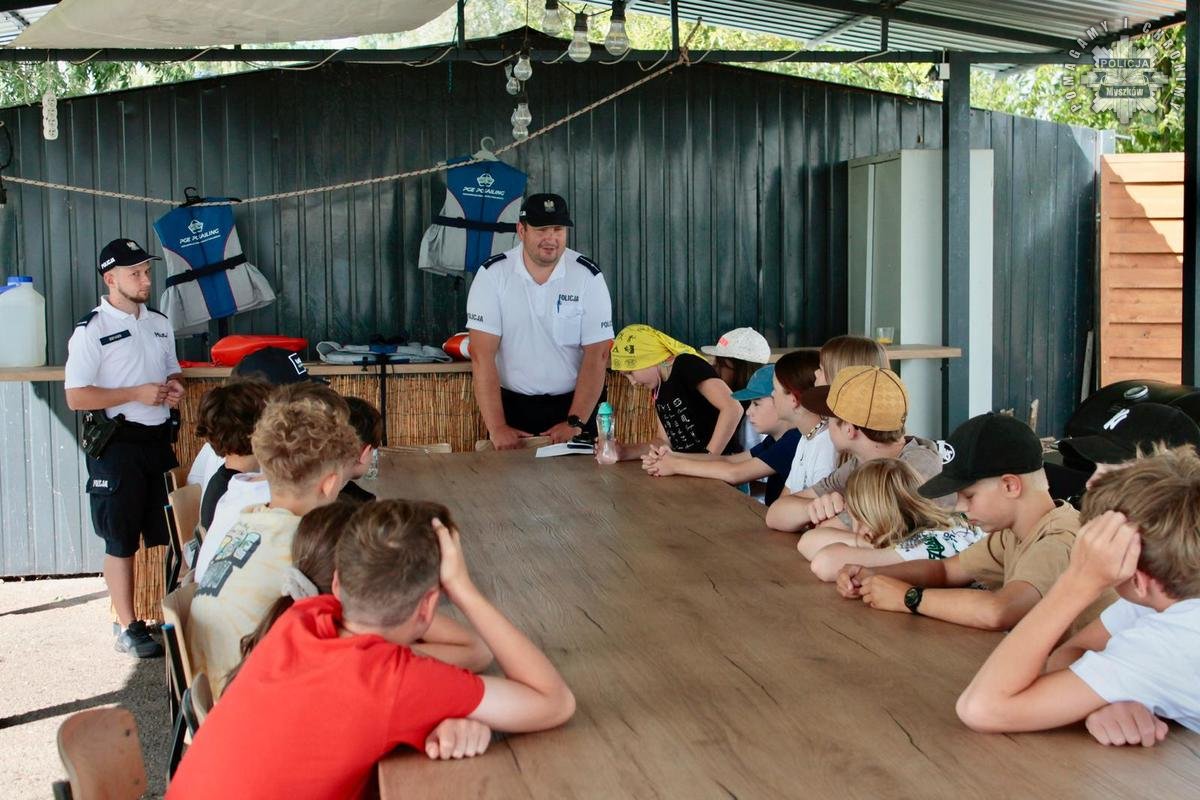 W sezonie letnim policyjne pogadanki w plenerze nie należą do rzadkości. Przez cały okres wakacji mundurowi goszczą w stanicach wodnych, na obozach harcerskich i w różnego rodzaju ośrodkach kolonijnych. Ostatnio tłumaczyli odpoczywającym w Jastrzębiu i Przybynowie dzieciom jak unikać zagrożeń odpoczywając podczas letniego wypoczynku.