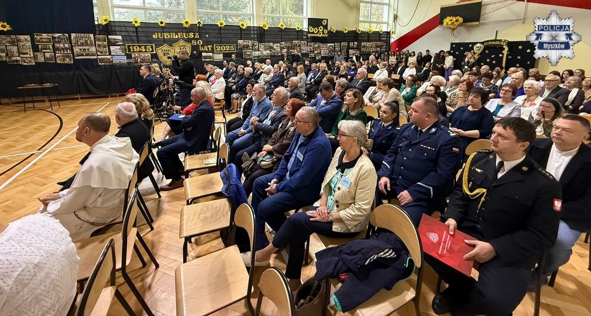 Udział przedstawiciela Komendy Powiatowej Policji w Myszkowie w jubileuszowych obchodach podkreśla dobrą współpracę Policji ze środowiskiem oświatowym oraz wspólne działania na rzecz bezpieczeństwa młodzieży