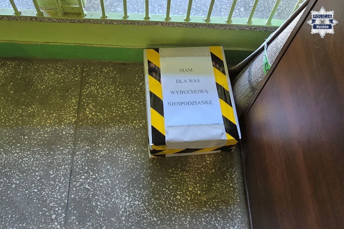 Zgodnie ze scenariuszem, Dyżurny KPP w Myszkowie otrzymał informację od Dyrektora Szkoły o znalezieniu na korytarzu budynku podejrzanego pakunku — tekturowego pudełka zabezpieczonego taśmą z napisem „mam dla was wybuchową niespodziankę”, z którego miał dochodzić odgłos tykania. Na miejsce skierowano patrol Policji oraz funkcjonariuszy Nieetatowej Grupy Rozpoznania Minersko-Pirotechnicznego (NGRMP). Po przybyciu na miejsce dokonano oceny zagrożenia, zabezpieczono teren oraz zarządzono ewakuację uczniów i pracowników szkoły do wyznaczonego punktu zbiórki przy remizie OSP w Jaworzniku.