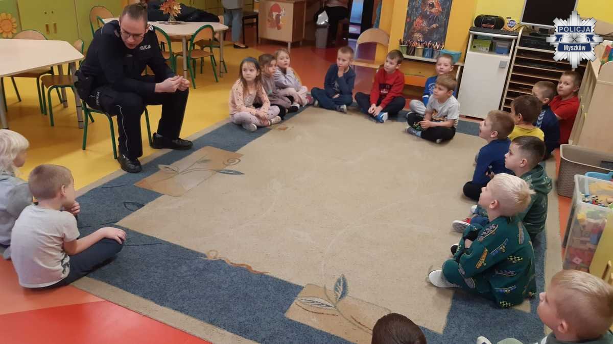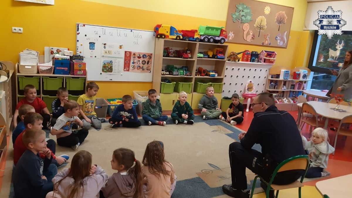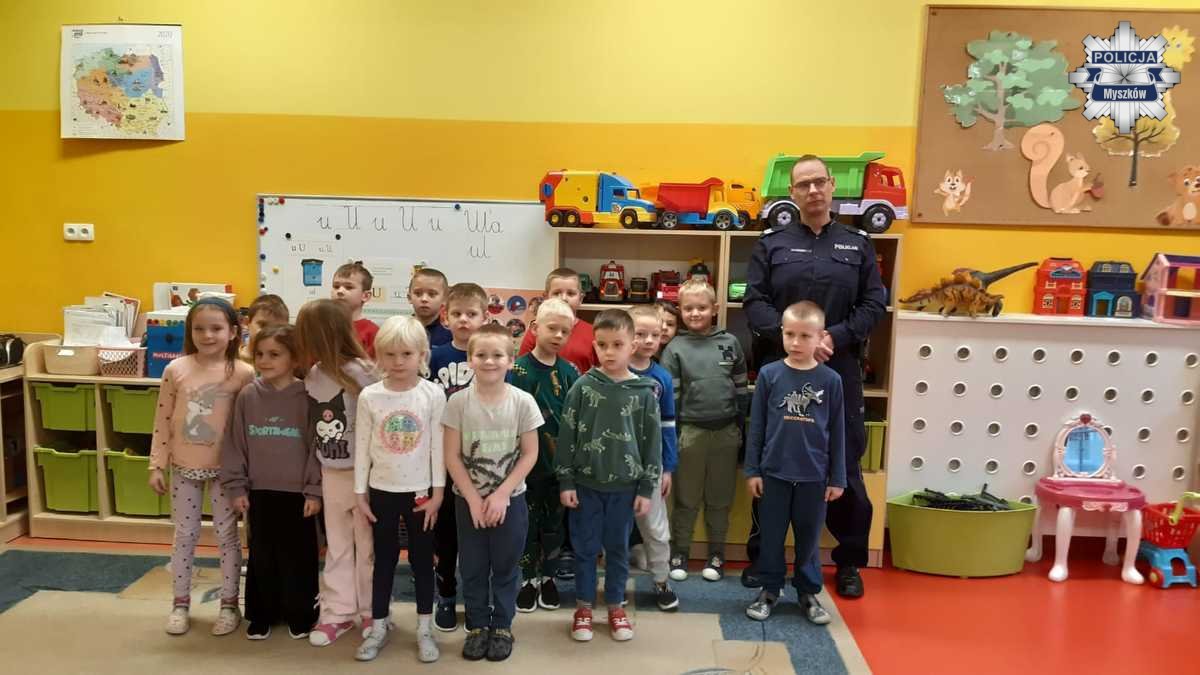 W ramach działań profilaktycznych policjanci z Komendy Powiatowej Policji w Myszkowie odwiedzili Przedszkole nr 2. Spotkanie miało na celu przybliżenie najmłodszym zasad bezpiecznego zachowania w różnych sytuacjach dnia codziennego. Dzieci z dużym zainteresowaniem uczestniczyły w zajęciach, które połączono z nauką i zabawą.