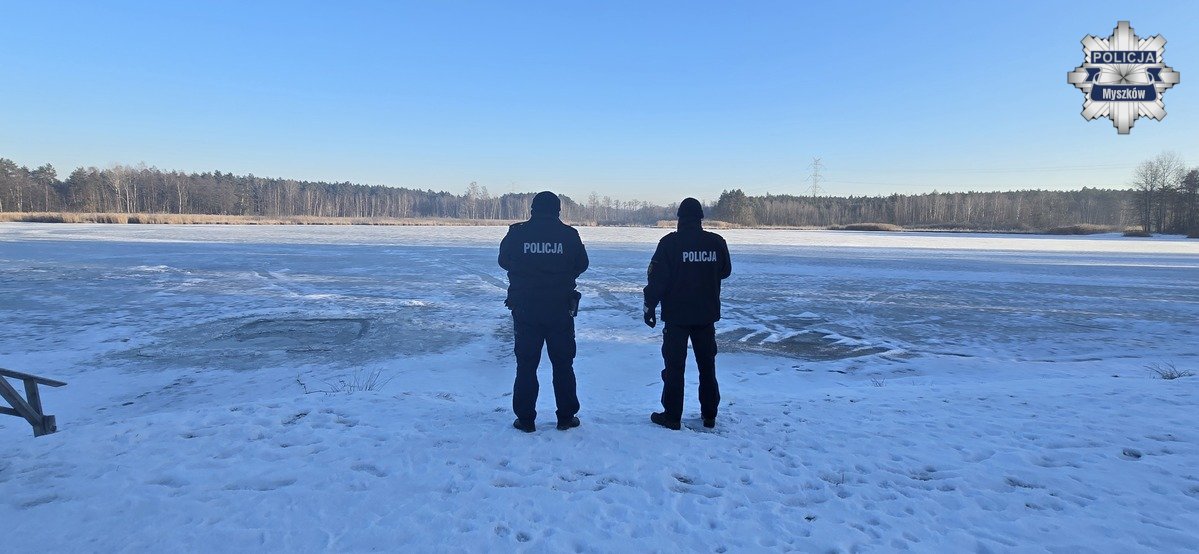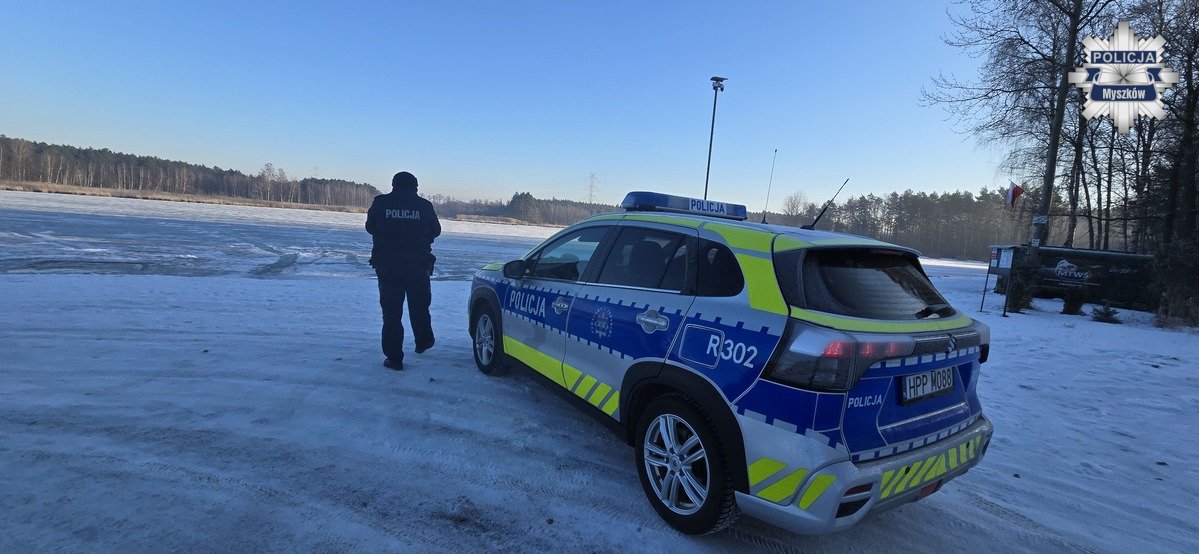 Zimowe zabawy na zamarzniętych zbiornikach wodnych to najprostszy przepis na nieszczęście. Pokryte lodem lub śniegiem jezioro przyciąga wiele osób, szczególnie dzieci. Mroźne noce i odwilż w ciągu dnia powodują, że lód jest tylko pozornie gruby. W rzeczywistości jest bardzo kruchy i niebezpieczny. Myszkowscy policjanci kontrolują akweny wodne i przestrzegają przed wchodzeniem na lód. Okres zimowy to czas rekreacji na świeżym powietrzu dla dzieci i młodzieży. Nieprzemyślane, lekkomyślne korzystanie z uroków zimy może zakończyć się tragicznie.