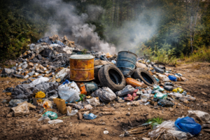Policja ostrzega przed nielegalnym składowaniem odpadów – zagrożenie dla środowiska i konsekwencje prawne